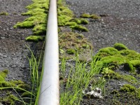 緩衝地帯 投稿者:石崎立矢 滋賀県高島市のアパート駐車場。 配管を守るように、草と苔が生える。 大陸の資源パイプラインを守る緩衝地帯のようだ。